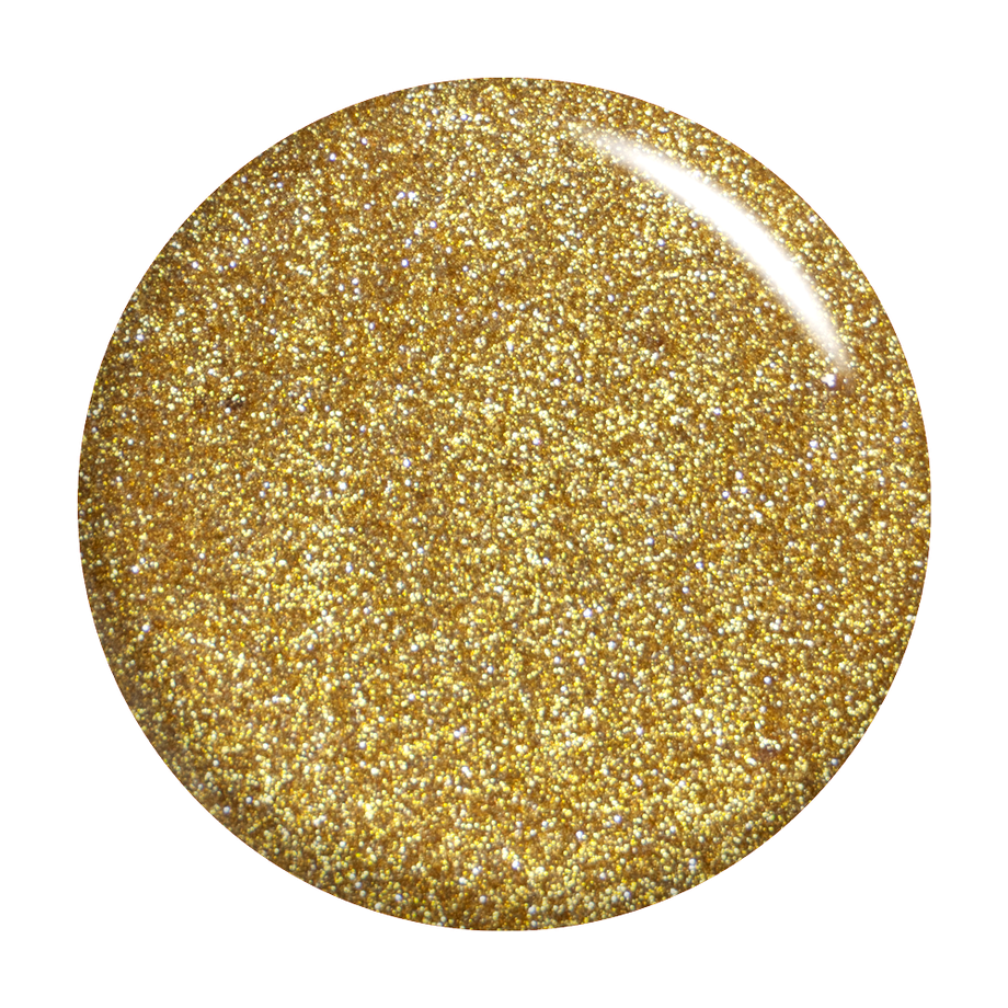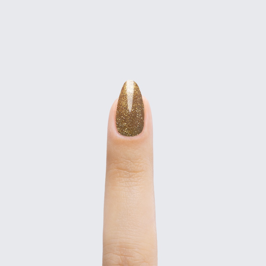 Run the show with this translucent polish full of gold shimmer.