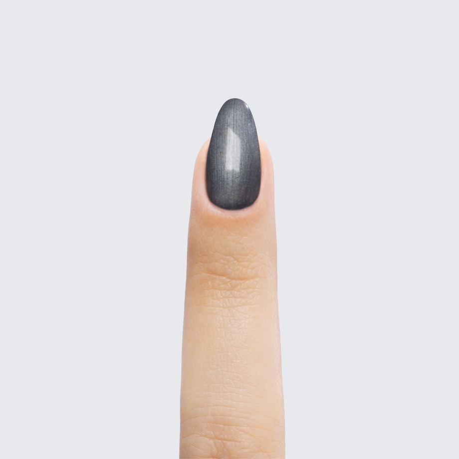 Gunmetal grey. Dark. Pearl finish. Opaque. Cool undertone.